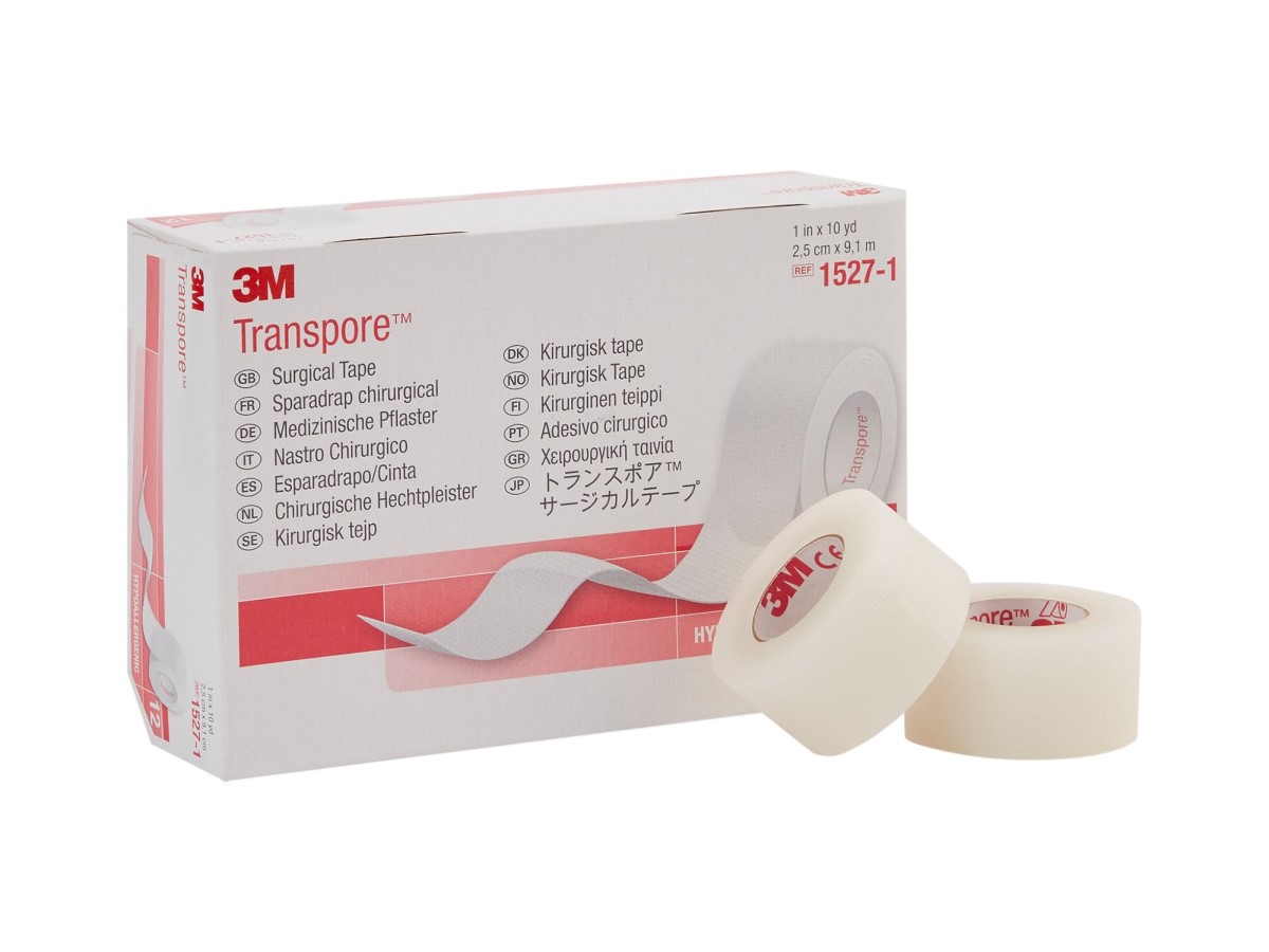 Transpore tape is easy to tear into very thin strips and is easy to use even with gloves.